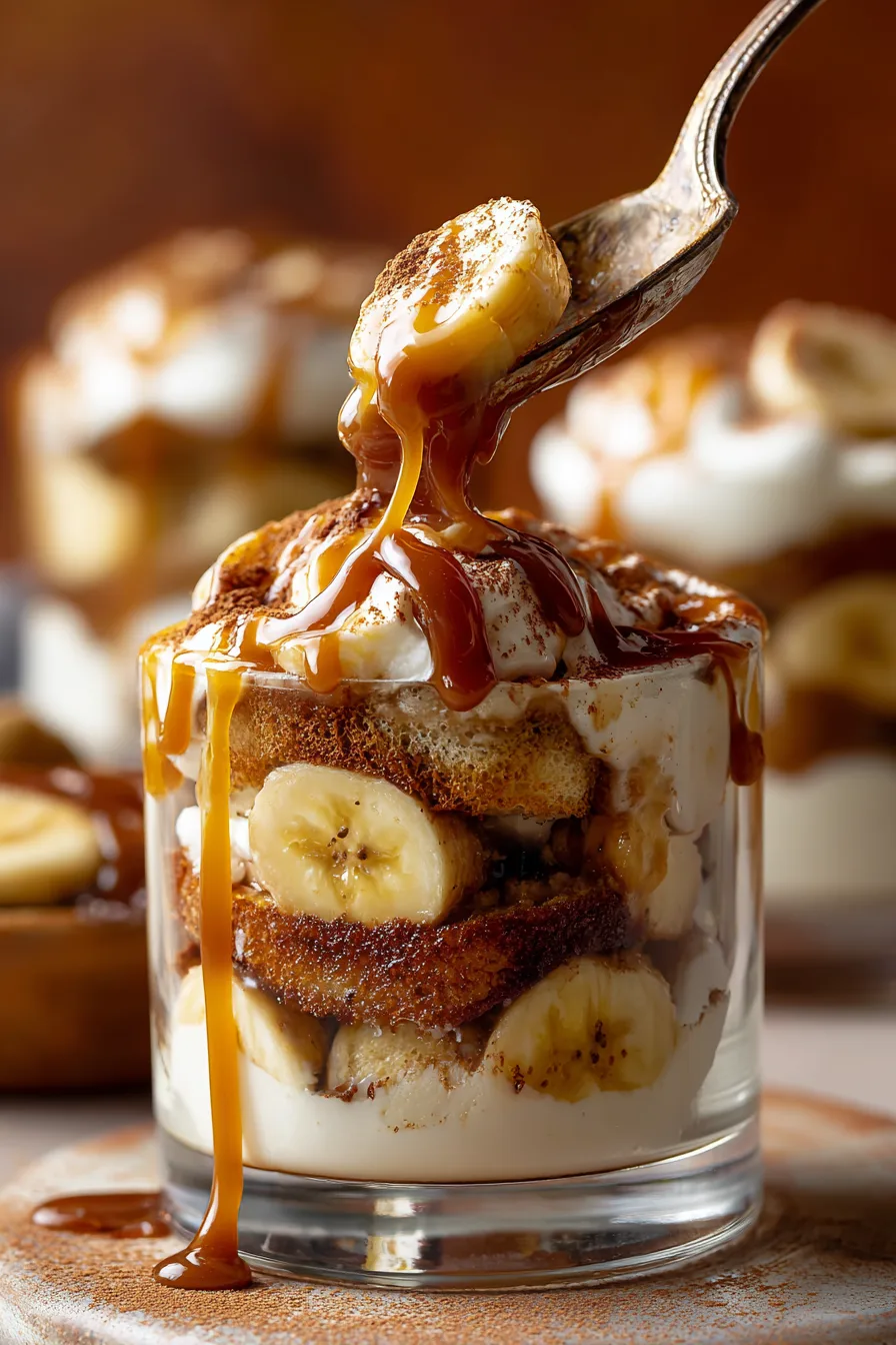 Visual appeal is paramount for a dessert this indulgent. While a large rectangular dish is the standard “family-style” approach, you can elevate the presentation by assembling individual portions in glass stemware, such as martini glasses or small mason jars. This showcases the beautiful striations of cream, fruit, and golden caramel.
