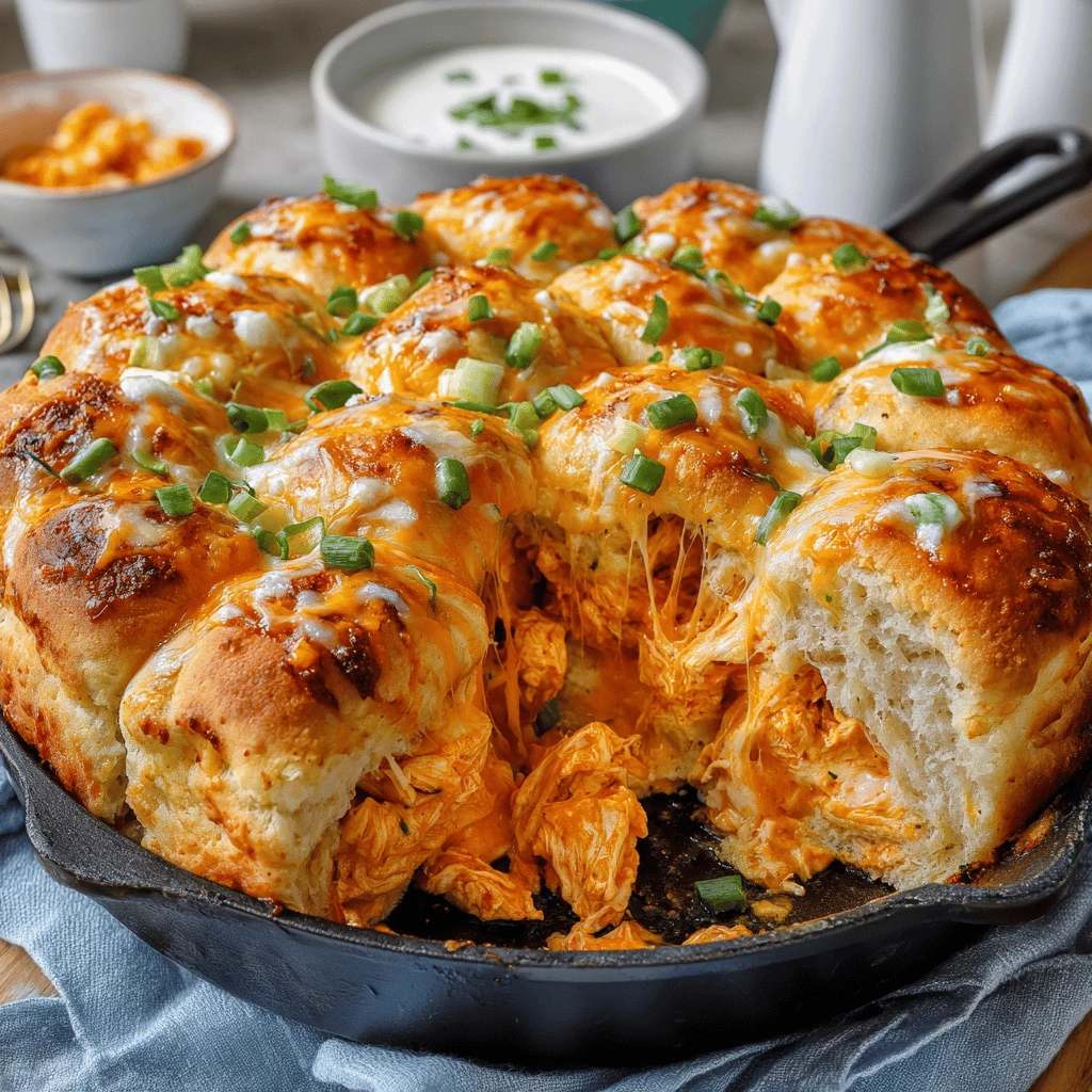 These Buffalo Chicken Dip Stuffed Pull-Apart Rolls are a guaranteed crowd-pleaser. They combine the best aspects of buffalo chicken dip with the fun of a pull-apart bread.