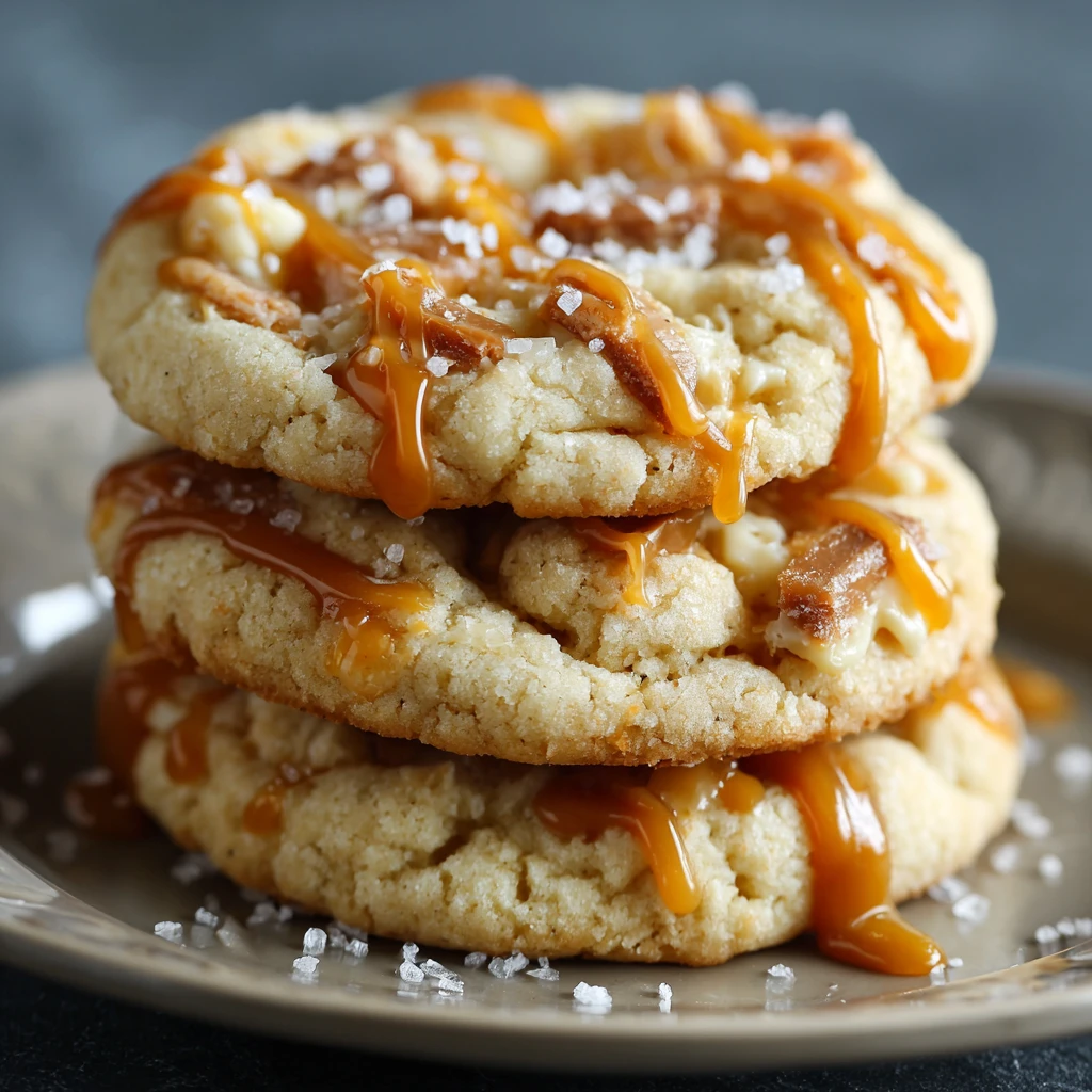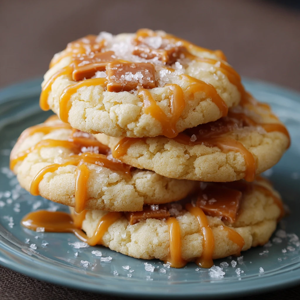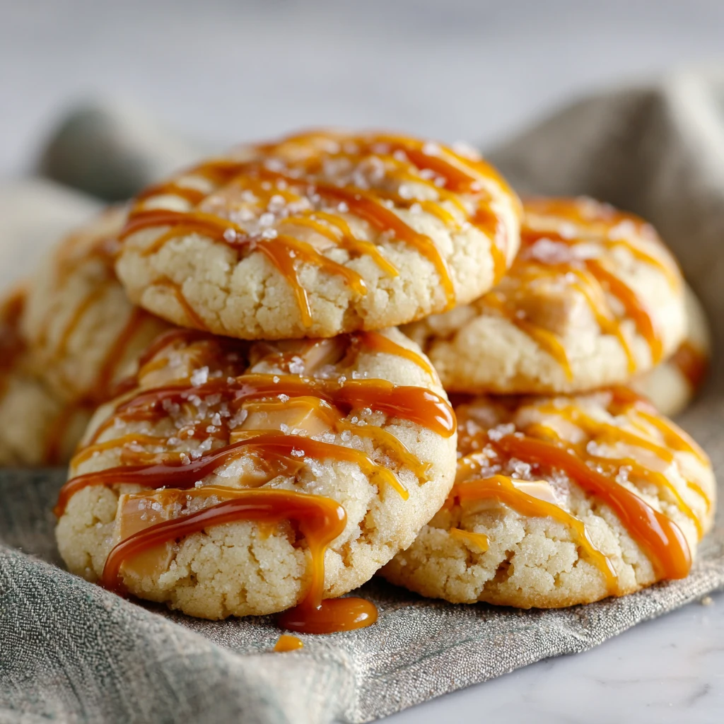 12. Drizzle and Sprinkle: Drizzle the melted caramel over the cooled cookies. Sprinkle with sea salt flakes, if desired.