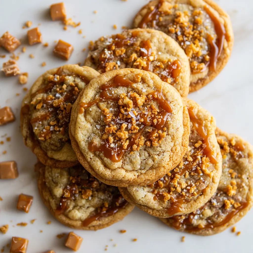 To elevate the flavor even further, the use of sea salt is non-negotiable. Caramel and toffee are inherently very sweet; the addition of salt acts as a flavor enhancer, cutting through the sugar and highlighting the toasted notes of the butter. Using a high-quality flaky salt, such as Maldon, as a finishing touch provides a visual appeal and a burst of salinity that makes the cookie addictive.