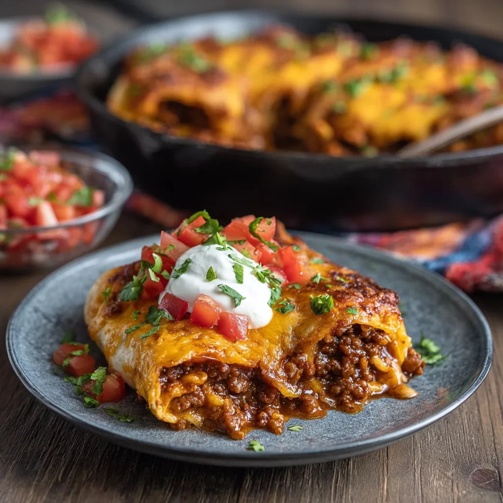 While the base recipe is designed for maximum comfort, it is highly adaptable to different palates. If you prefer a higher heat level, swap the Monterey Jack for Pepper Jack cheese and add chopped serrano peppers to the beef filling. For those looking for a lighter version, ground turkey or chicken can be substituted for the beef, though you may want to add a splash of Worcestershire sauce to mimic the richness of red meat. You can also “bulk up” the interior by adding corn or black beans if you aren’t a Texas chili purist. The beauty of this dish lies in its structural integrity; as long as the tortillas are rolled tightly and the sauce-to-cheese ratio is maintained, the variations are endless.