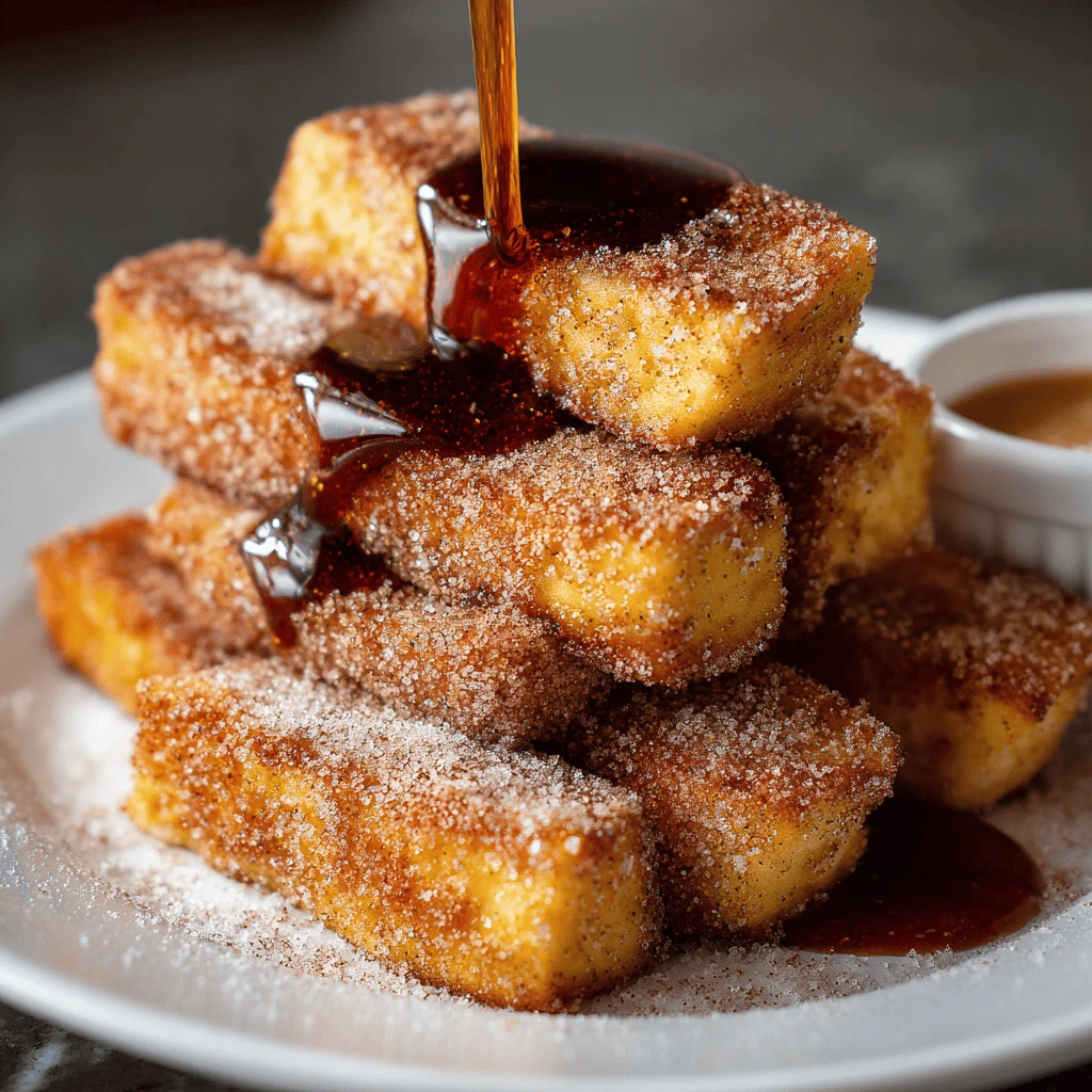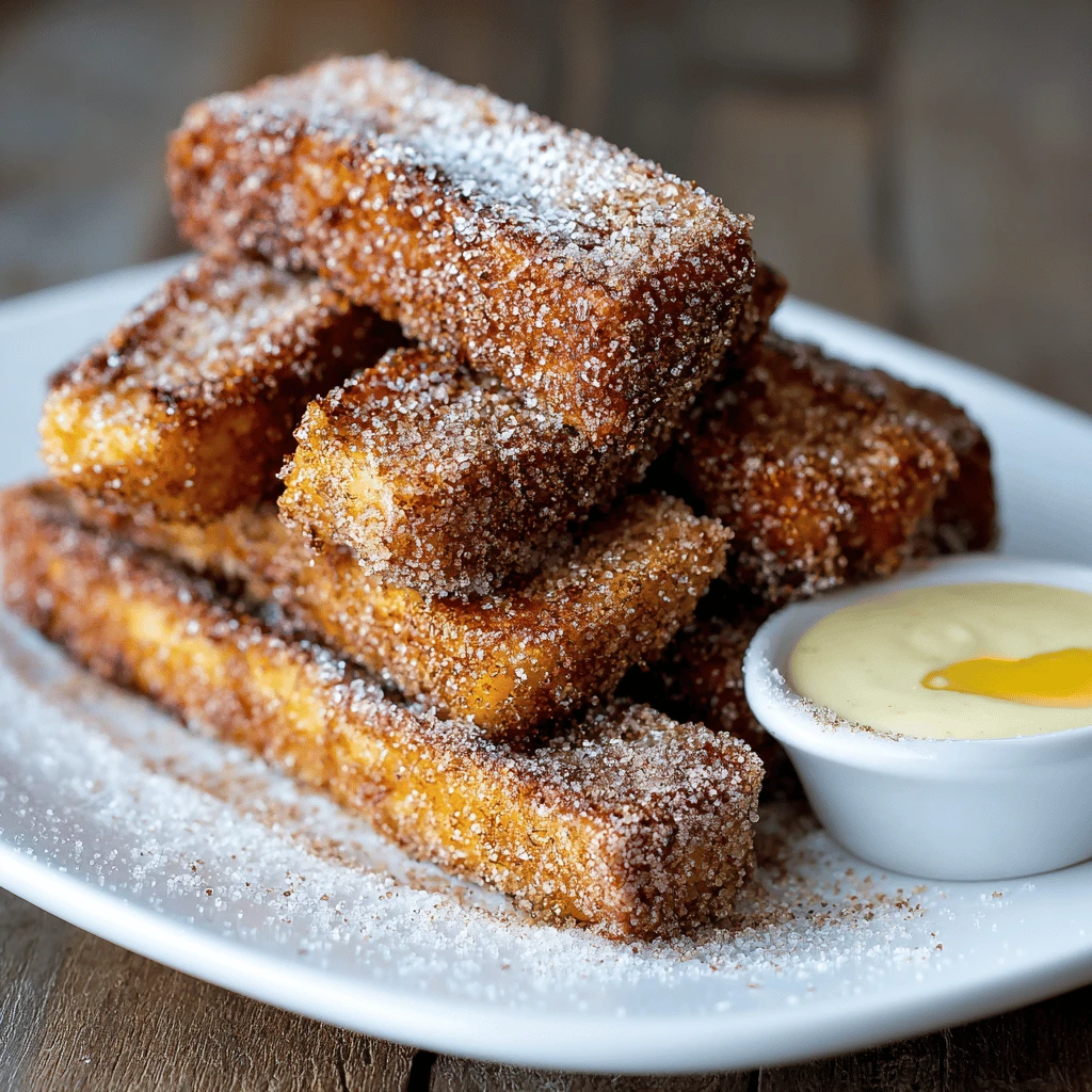 9. Serve: Arrange the Cinnamon Sugar Churro French Toast Sticks on a platter.