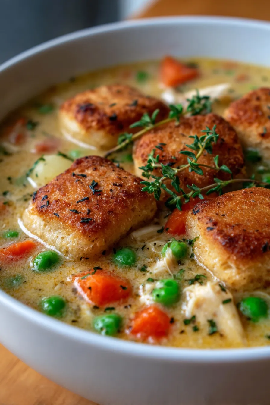 A: To mimic the pot pie experience, consider serving with flaky biscuits, puff pastry squares (baked separately until golden), oyster crackers, or even some homemade croutons. A sprinkle of fresh parsley or a dash of hot sauce also makes for a delightful addition!