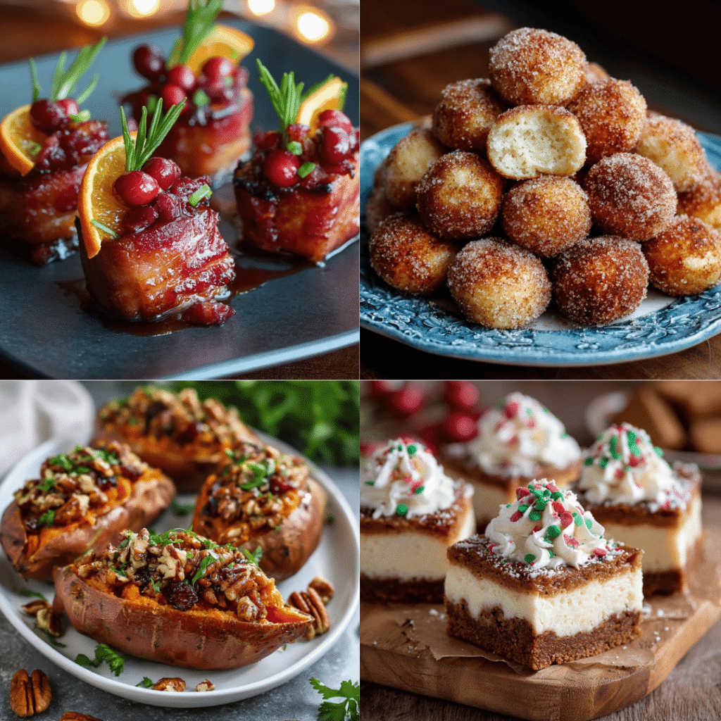 Cozy Holiday Treats Everyone Will Love November 18, 2025 • Amanda Taylor • DESSERT 0 Frosted Gingerbread Cheesecake Bars Peppermint Mocha Truffle Brownies Cranberry Orange Glazed Ham Bites Cinnamon Sugar Snowball Pancake Bites Holiday Eggnog Cheesecake Dip Maple Pecan Stuffed Sweet Potatoes Love this recipe? Bring it home! Save it to your collection or share the flavor with your friends. ♡ Save Recipe 0 Pin It 0