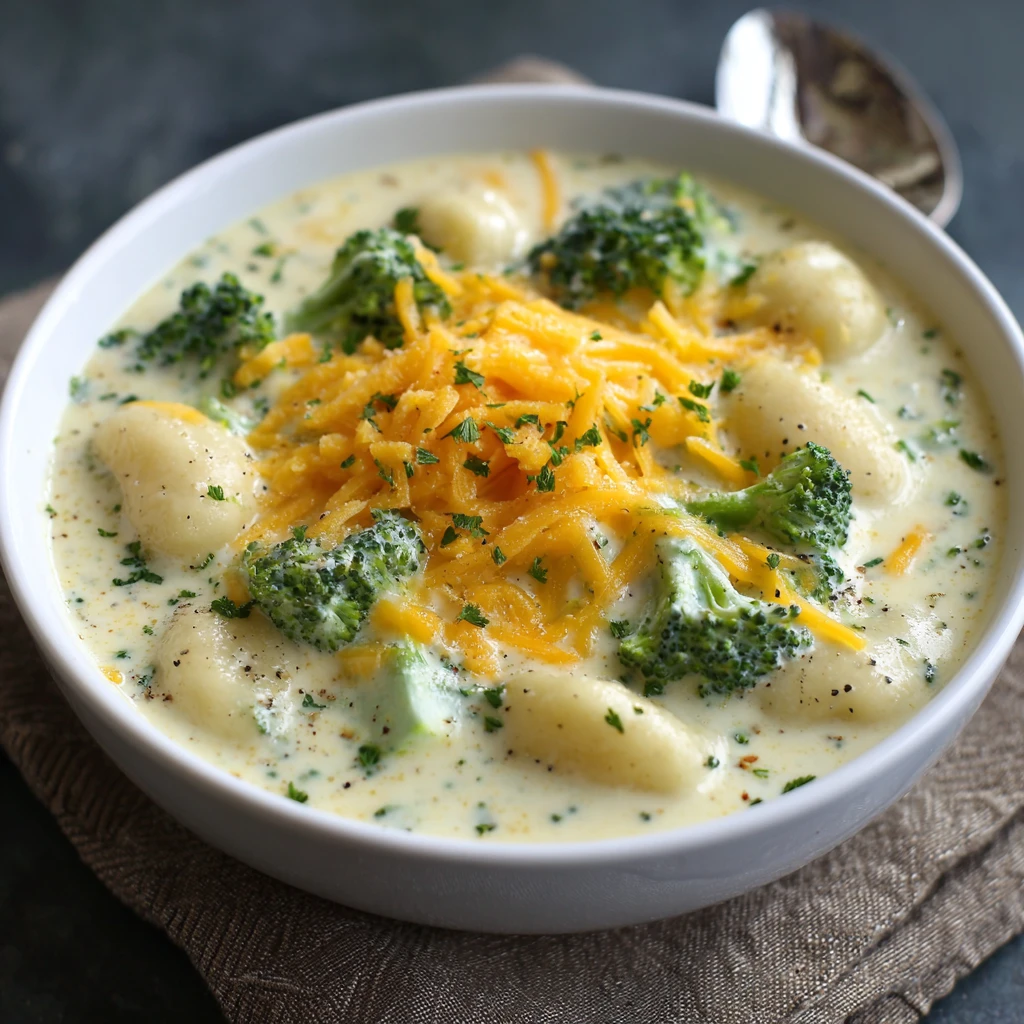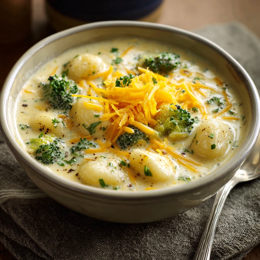 Creamy Broccoli Cheddar Gnocchi Soup Recipe