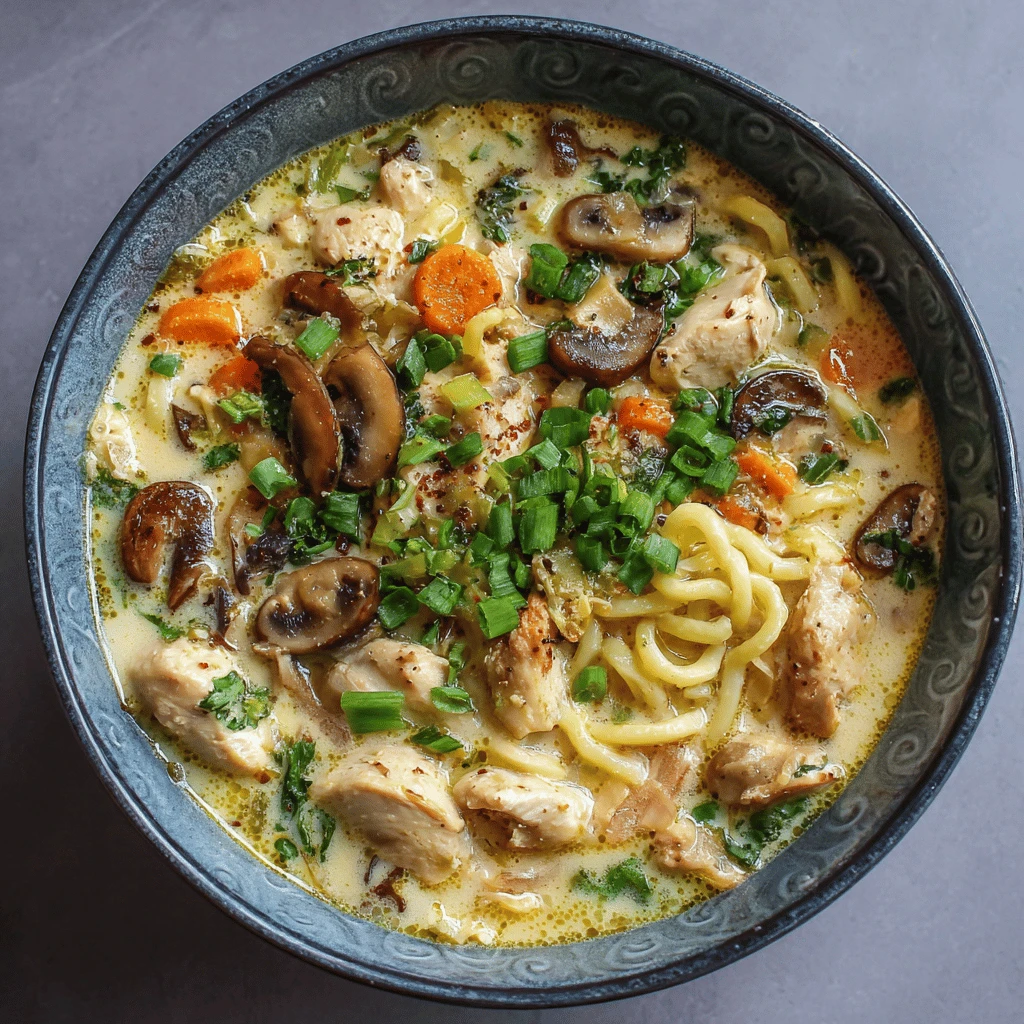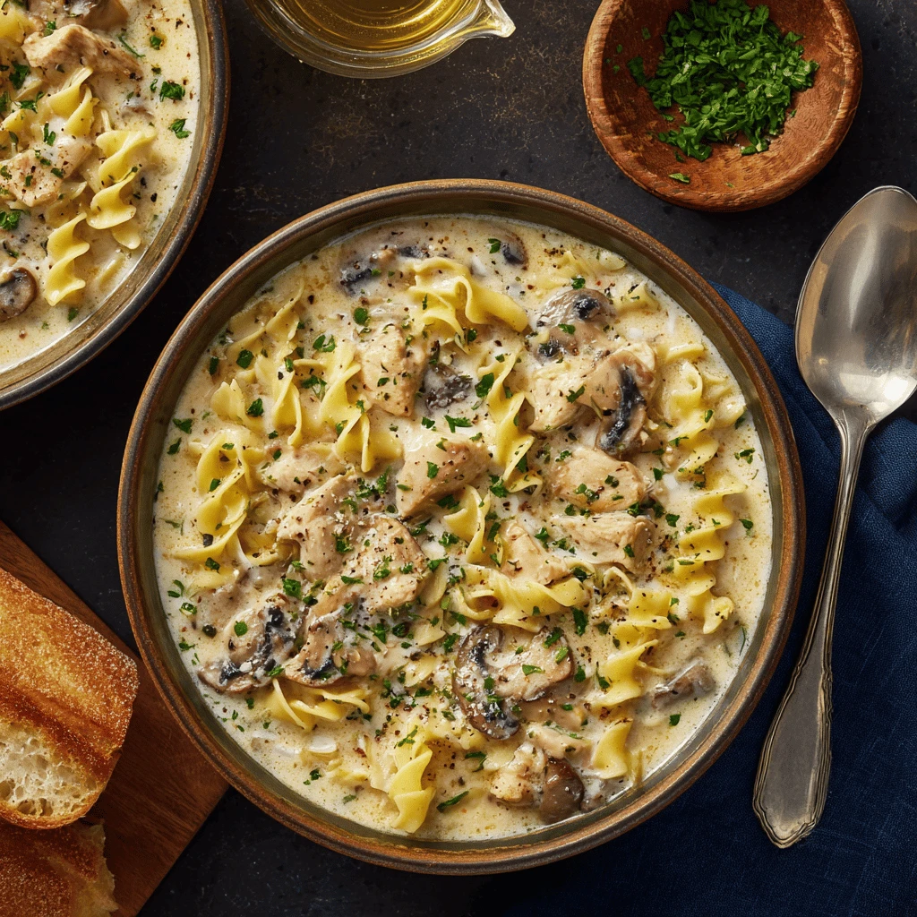 Creamy Chicken & Mushroom Noodle Soup