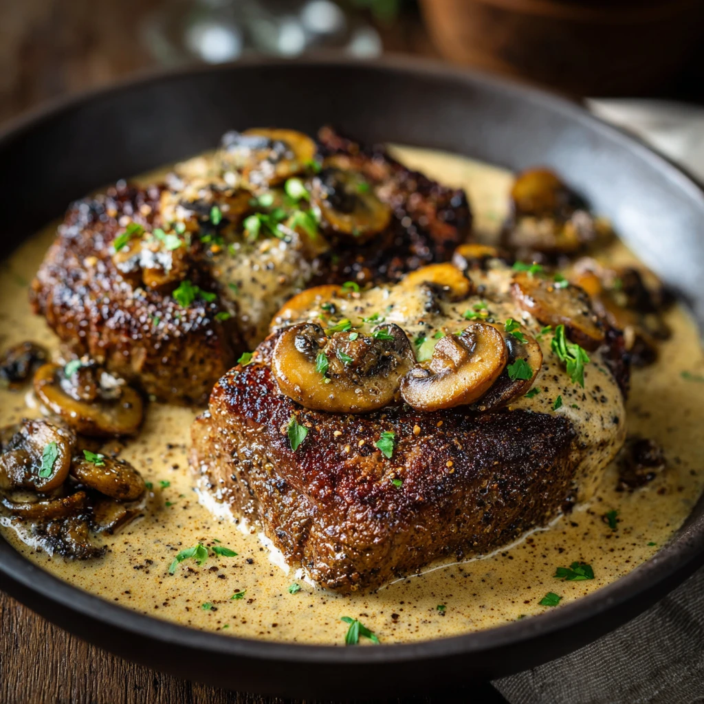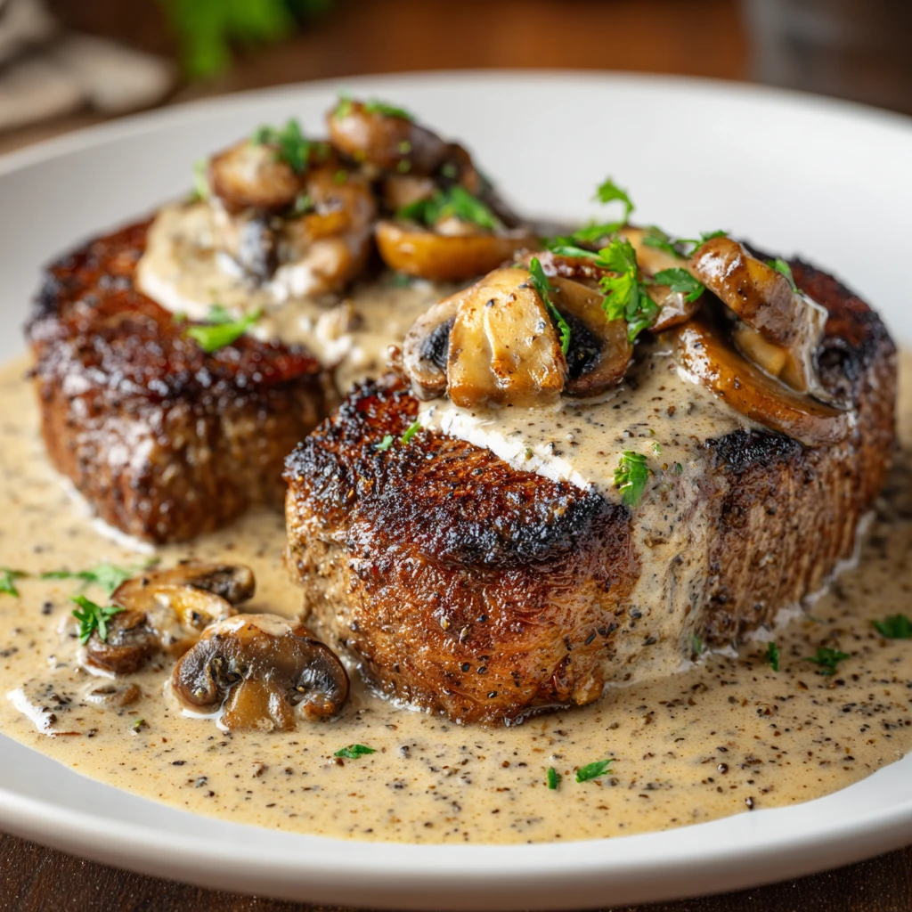 Creamy Mushroom Steak au Poivre