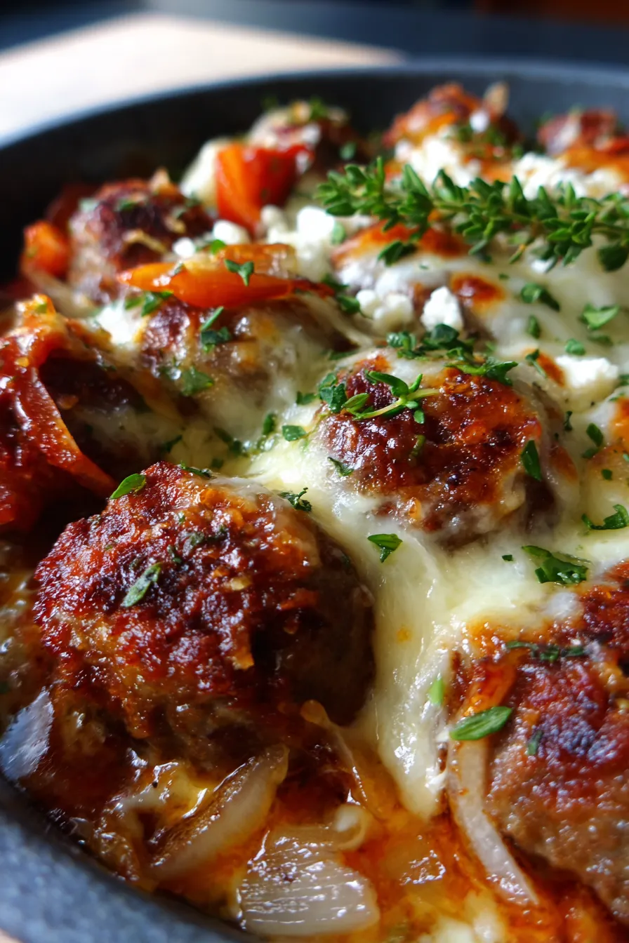 This dish is the ultimate easy dinner solution, bringing together tender, flavorful meatballs with a rich, caramelized onion gravy, all topped with gooey, bubbly Gruyere cheese. Get ready to experience comfort food redefined!