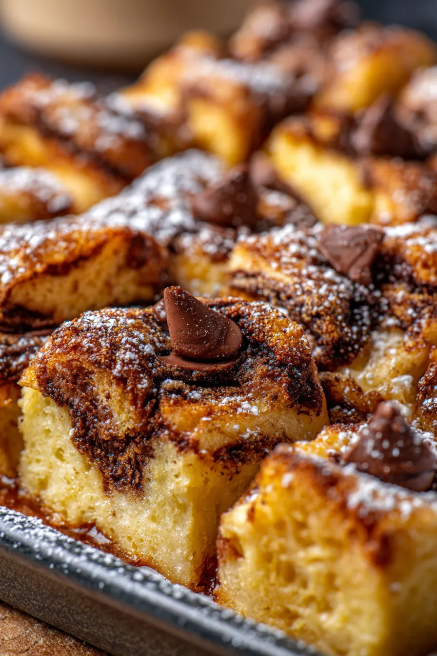 - Dreamy Gooey Texture: Expect incredibly moist bread soaked in luscious custard, punctuated by pockets of melted chocolate and creamy, tangy cream cheese. Pure bliss!