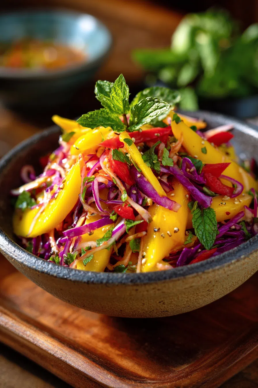- The combination of crunchy cabbage, carrots, and sweet mango creates a delightful texture.