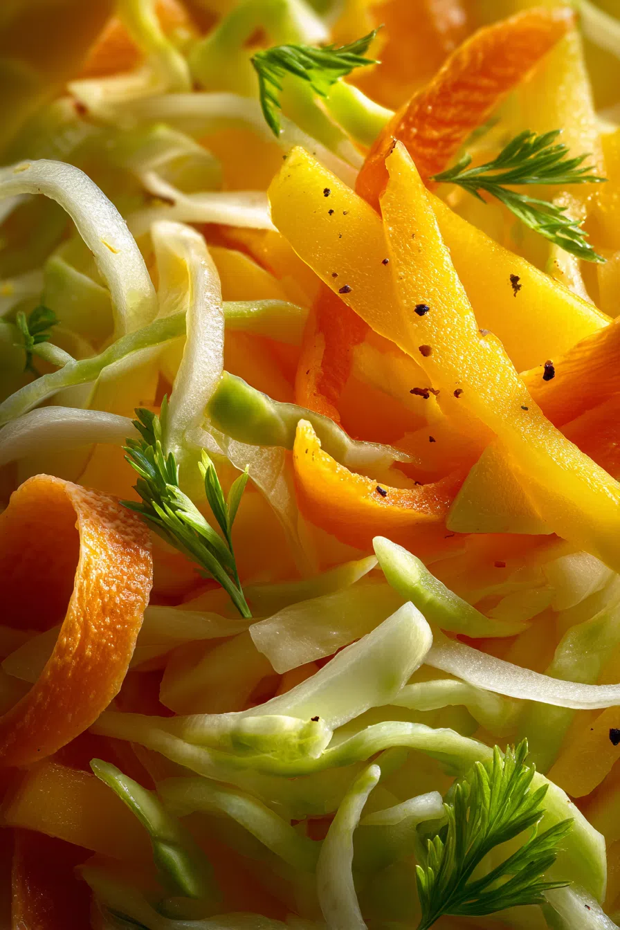1In a large bowl, combine shredded cabbage, carrot, and mango.