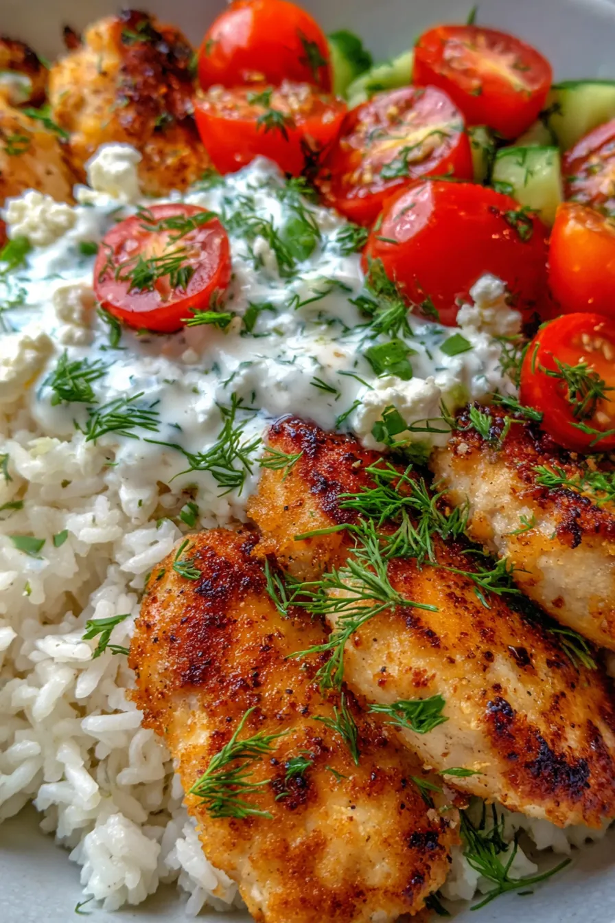 - Explosion of Fresh Greek Flavors: We’re talking tender, juicy chicken infused with savory seasonings, perfectly fluffy rice, and then crowned with a vibrant, cool, and creamy homemade tzatziki. It’s a symphony of fresh dill, zesty lemon, sharp garlic, and crisp cucumber that brightens every single bite.