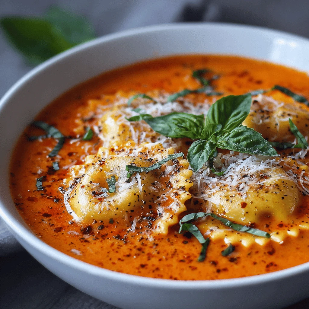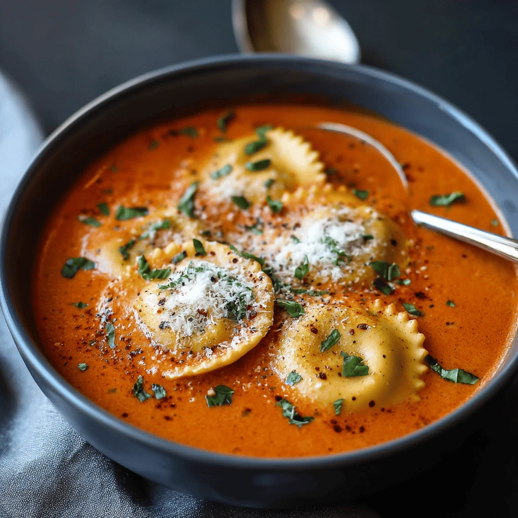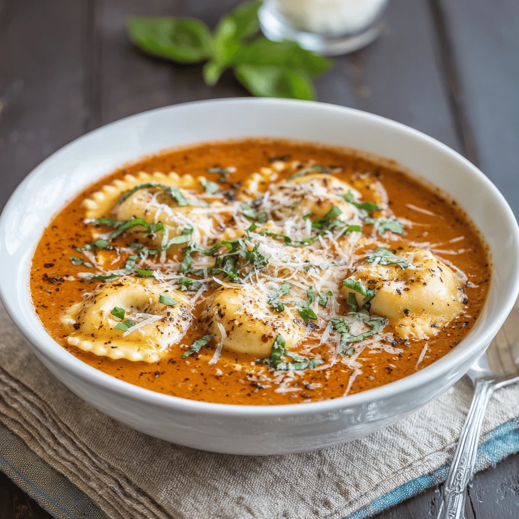 Easy Creamy Tomato Basil Ravioli Soup