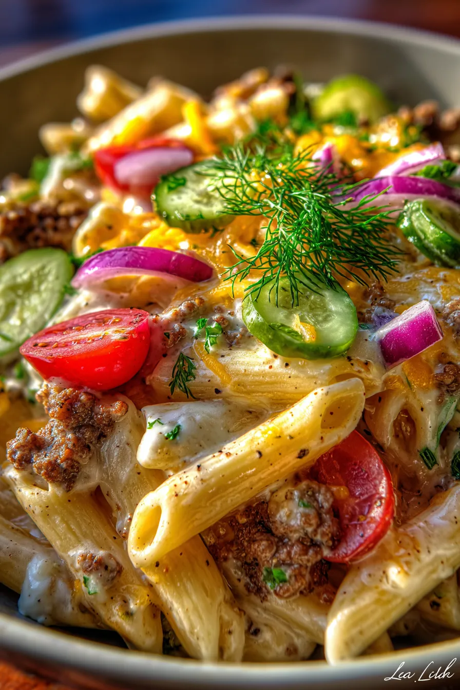 - β€οΈ Kid-Friendly & Crowd-Pleasing: Who doesn’t love cheeseburgers and pasta? This dish combines two universally adored concepts, making it an instant hit with even the pickiest eaters. It’s perfect for family dinners, potlucks, or casual gatherings where you want to impress without stress.