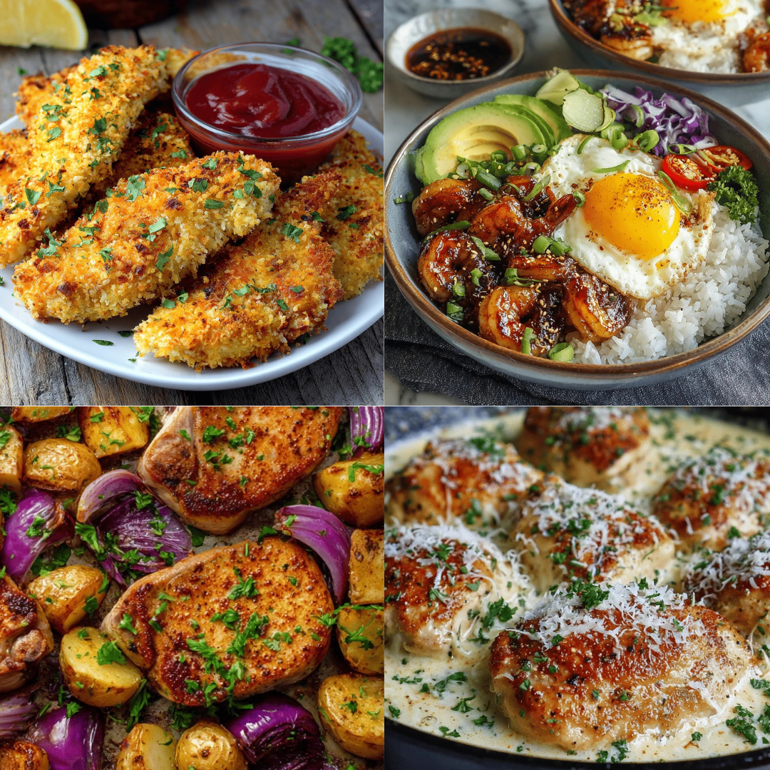 Easy One-Pan Dinners for Busy Nights November 14, 2025 • Amanda Taylor • DINNER 0 Creamy Garlic Parmesan Chicken Skillet One-Pan Lemon Butter Salmon & Broccoli Cheesy Taco Pasta Skillet Bake Honey Garlic Shrimp & Rice Bowls Crispy Baked Panko Chicken Tenders Sheet Pan Ranch Pork Chops & Potatoes Love this recipe? Bring it home! Save it to your collection or share the flavor with your friends. ♡ Save Recipe 0 Pin It 0
