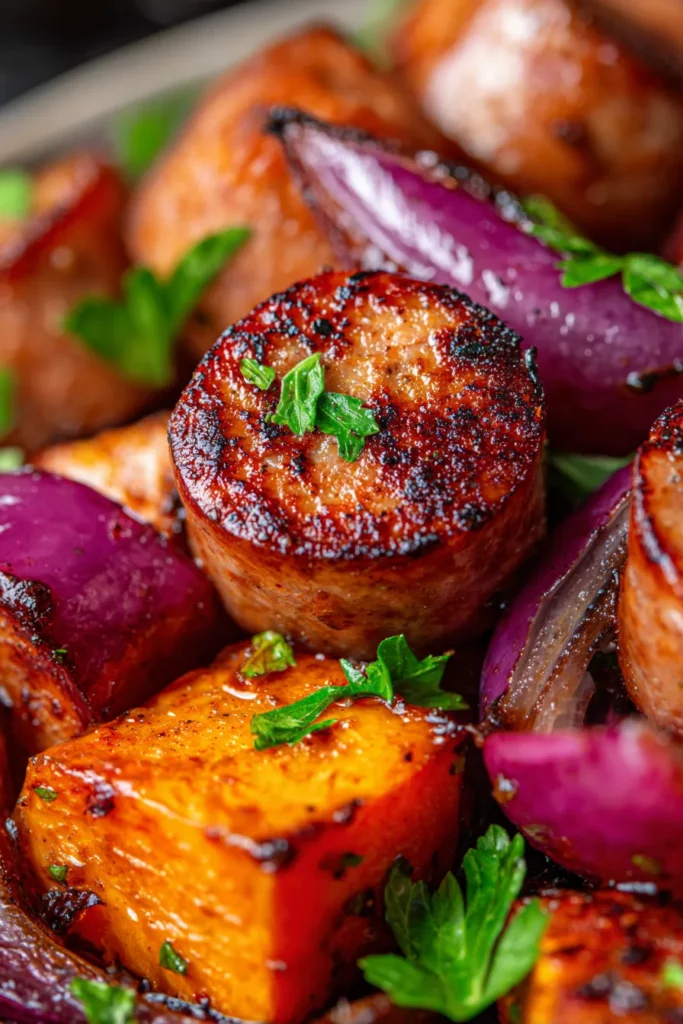 - Beautiful Presentation: The vibrant colors of the sweet potatoes, sausage, and glaze create a visually appealing dish that looks like you spent hours, but really, it was a breeze!