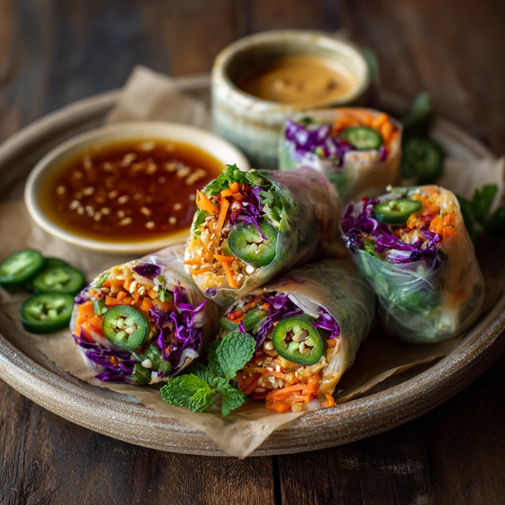 The jalapenos are the main source of heat in these spring rolls. The amount you use will determine the overall spiciness.