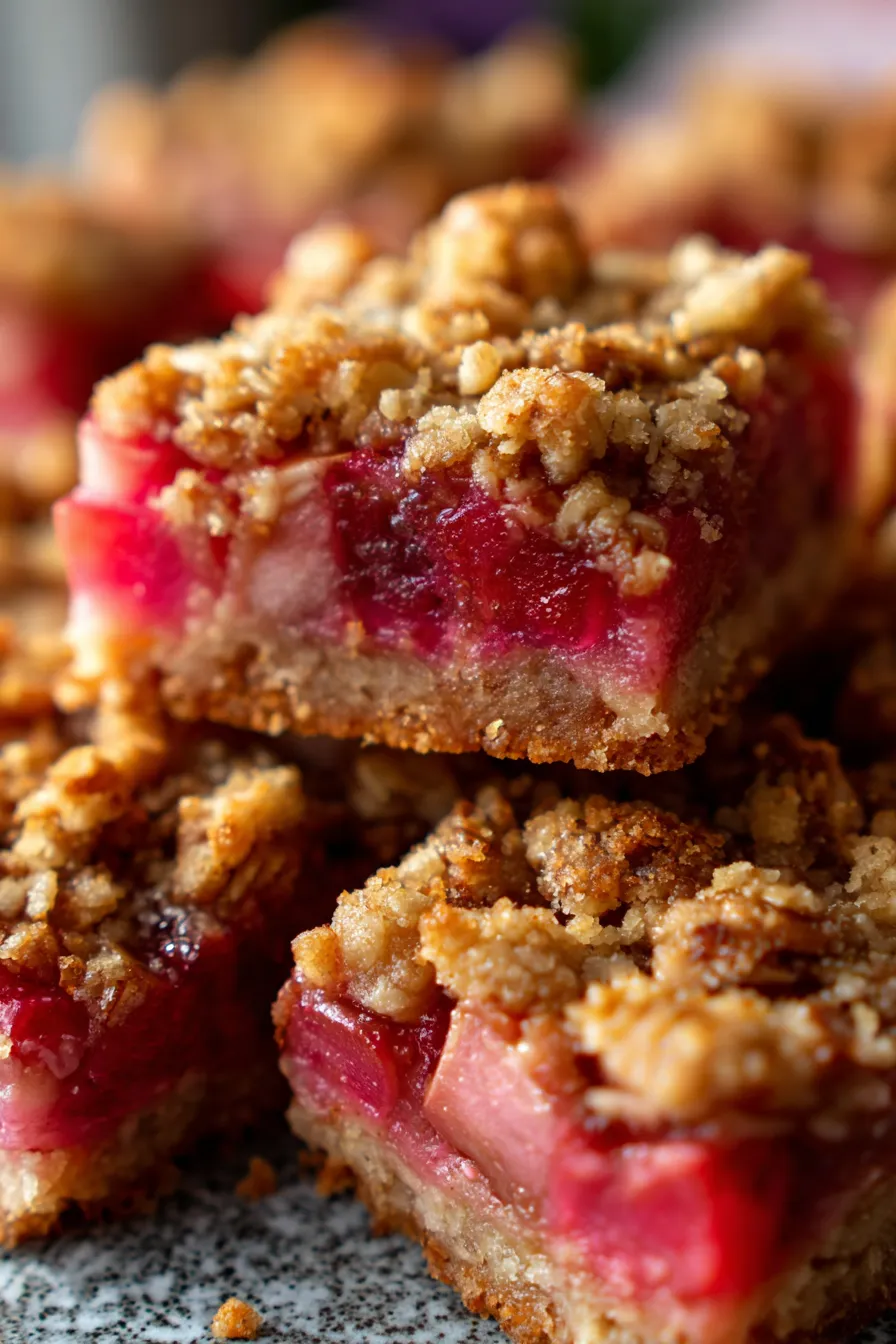 - Buttery Crumbly Topping: Indulge in a generous layer of golden-brown streusel topping, loaded with wholesome rolled oats and rich brown sugar. This crunchy, buttery element provides an irresistible textural contrast to the soft, vibrant rhubarb filling and the tender shortbread crust below.