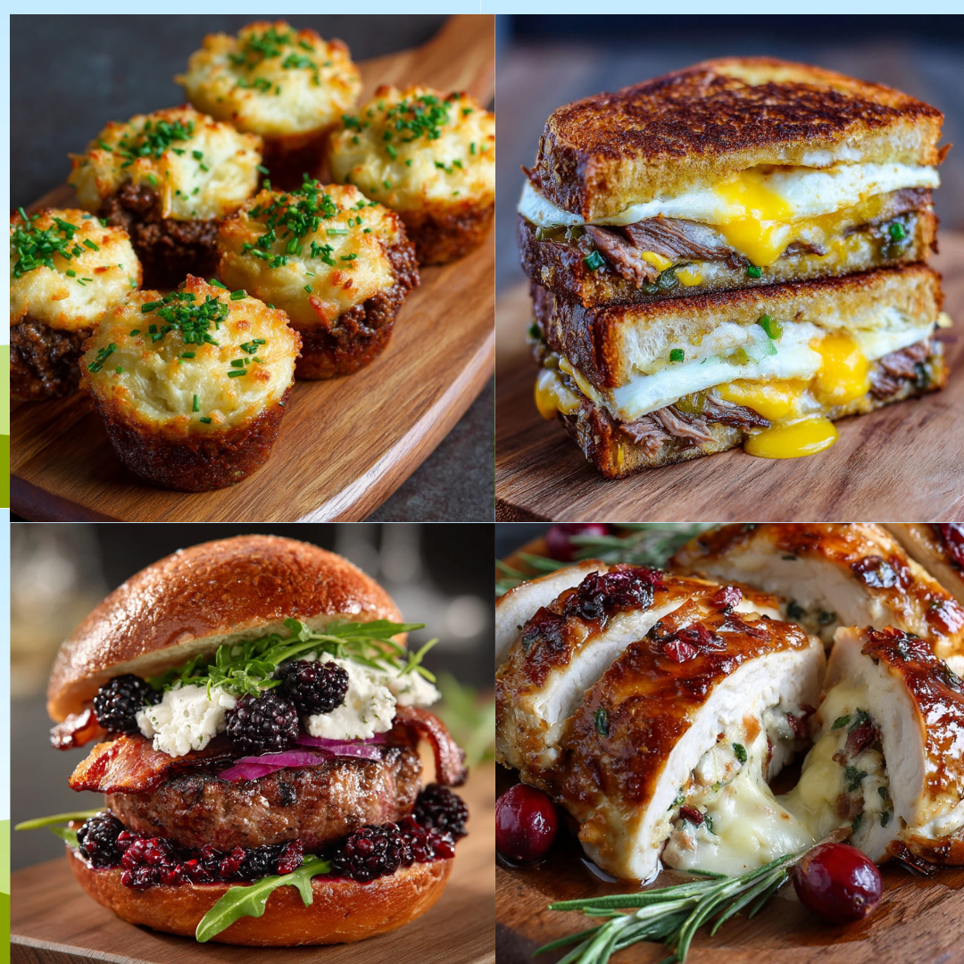 Next-Level Comfort Food Dinners Worth Craving Every Night November 26, 2025 • Amanda Taylor • DINNER 0 Cozy Texas Tamale Pie Cheesy Meatball Subs on a Stick Mini Shepherd’s Pie Cupcakes Smoked Brisket Grilled Cheese Melt Gourmet Bacon Blackberry Burger Cranberry Brie Stuffed Chicken Love this recipe? Bring it home! Save it to your collection or share the flavor with your friends. ♡ Save Recipe 0 Pin It 0