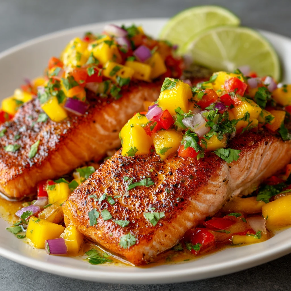 The vibrant salsa combined with perfectly cooked salmon delivers a taste sensation.
