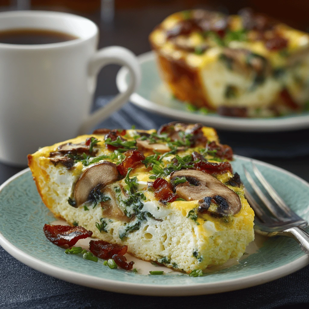 Embrace the flavors of the Mediterranean with this vibrant frittata. Sauté onions, garlic, and red bell pepper in olive oil. Whisk eggs with crumbled goat cheese, chopped fresh basil, salt, and pepper. Add the sautéed vegetables to the egg mixture and pour into an oven-safe skillet. Bake until golden brown.