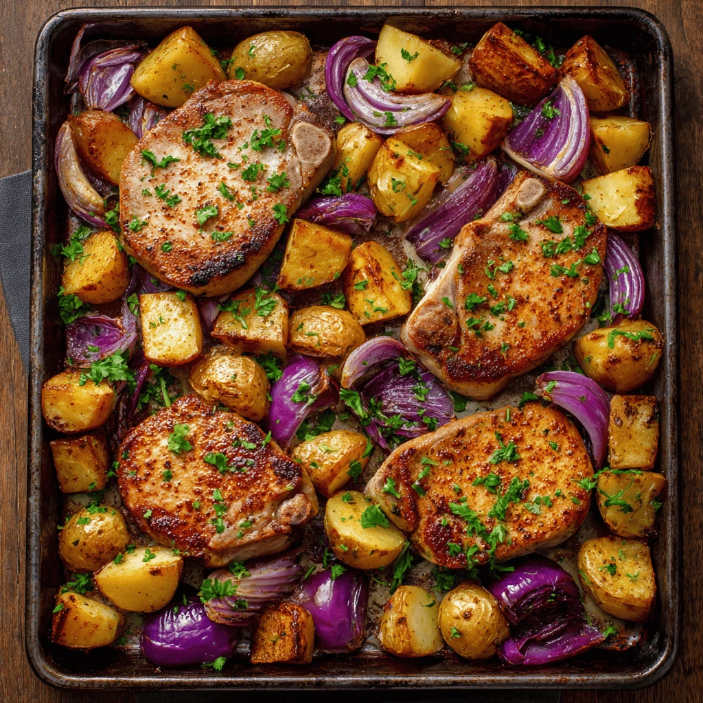 The beauty of sheet pan recipes is their versatility. You can easily swap out vegetables or protein based on what you have on hand or your dietary preferences. Substitute sweet potatoes for Yukon gold, or try chicken thighs instead of pork chops.