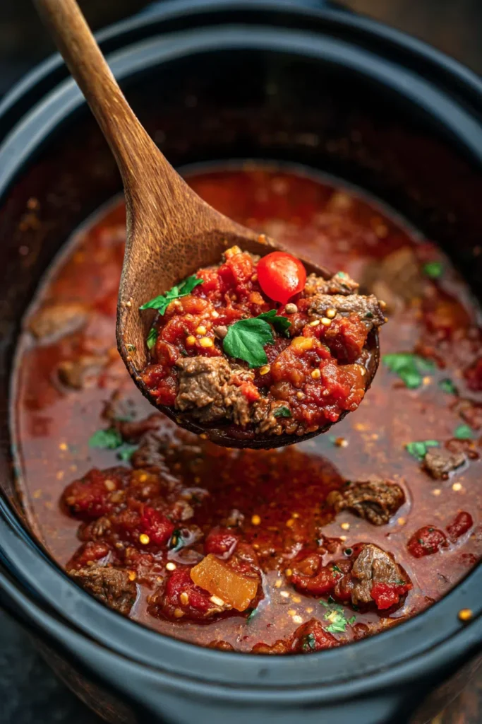 - The rich, bold flavors of the tomato sauce and beef broth meld together beautifully.