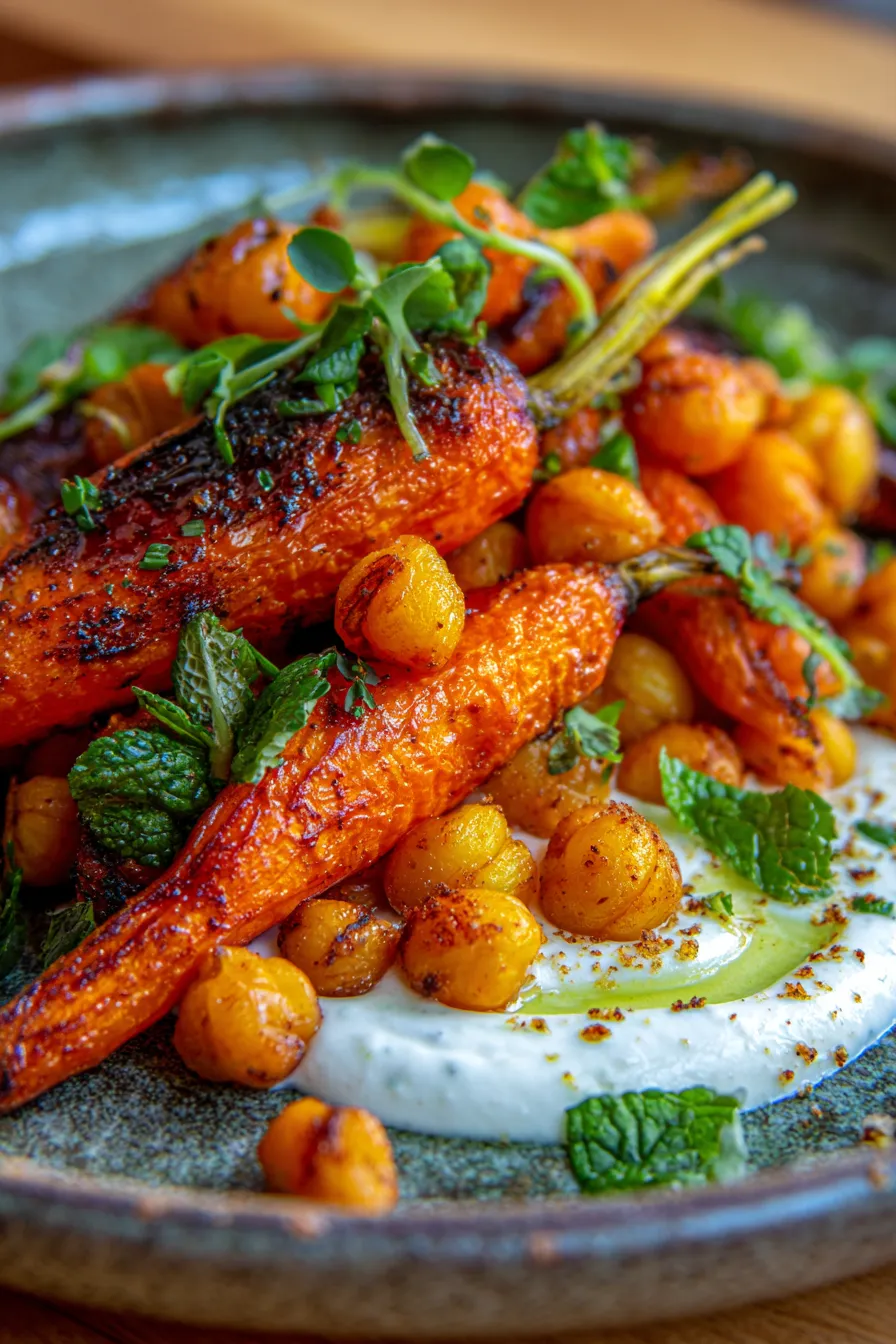 Spicy Maple Roast Carrots with Crispy Chickpeas and Yogurt Sauce: Your New Favorite Side Dish!
