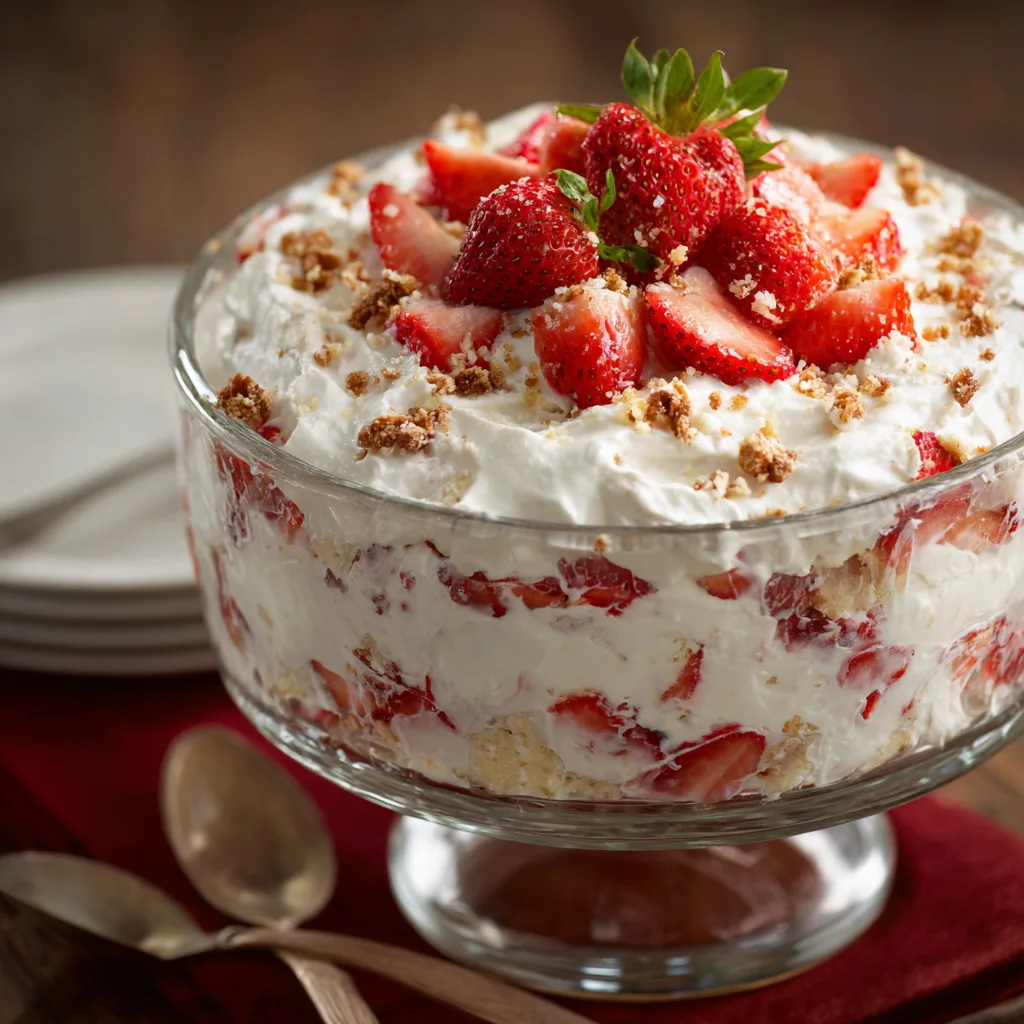 The Strawberry Shortcake Fluff Salad is more than just a dessert—it’s a celebration of summer flavors and a centerpiece of nostalgic potlucks. Combining the lightness of classic whipped toppings, the sweetness of fresh strawberries, and the airy texture of cake and marshmallows, this “salad” offers all the beloved elements of traditional strawberry shortcake in a remarkably easy, no-bake, scoopable format. It captures the essence of retro dessert salads while delivering a distinctly modern, irresistible creamy texture. It is the perfect sweet ending to any backyard barbecue or holiday gathering, requiring minimal prep and maximum chill time, making it the ultimate make-ahead crowd-pleaser.