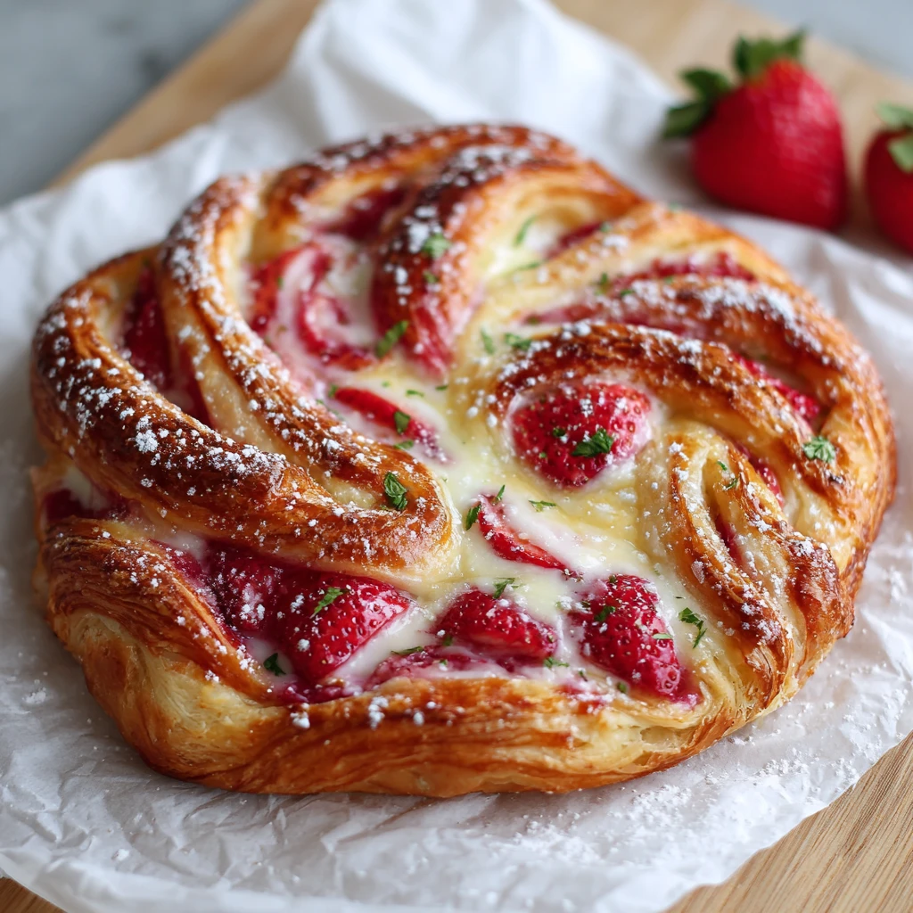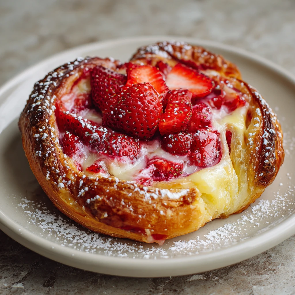 The strawberry swirl adds a burst of fruity flavor and a beautiful visual appeal to the danishes. Fresh is best!