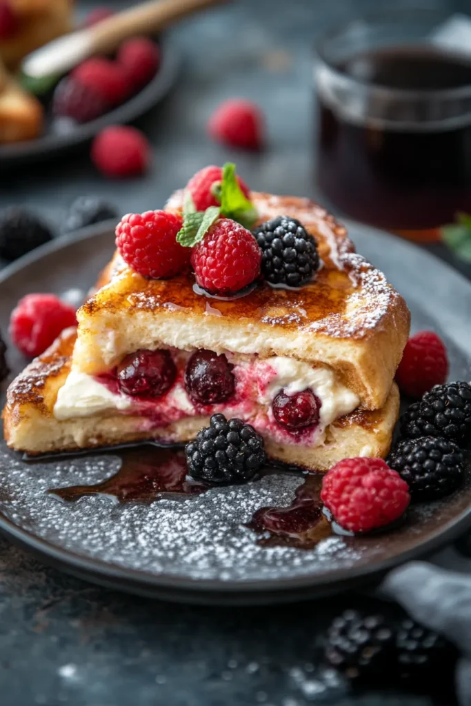 Decadent Stuffed French Toast with Cream Cheese & Berries