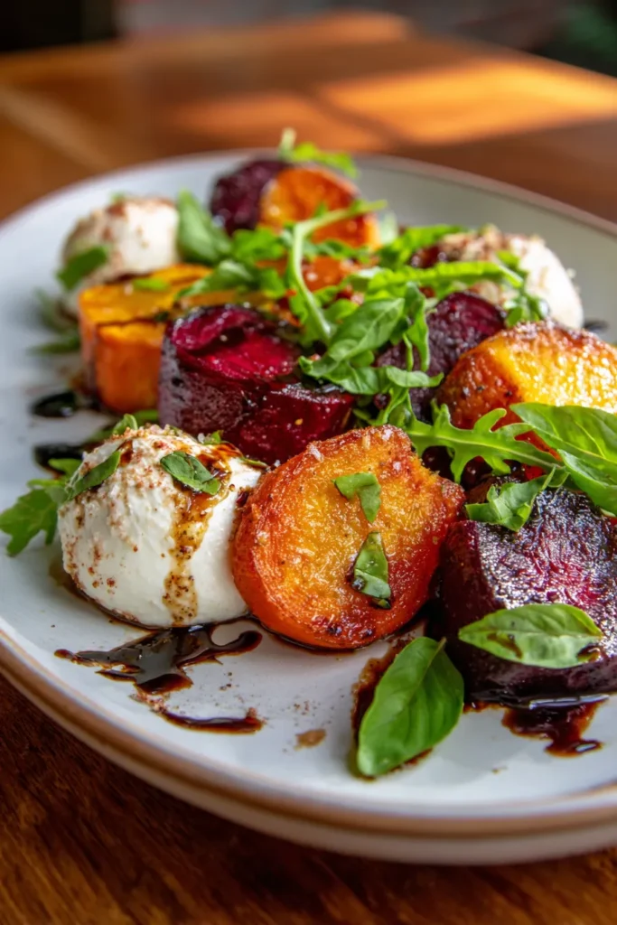 Vibrant Roasted Beets & Carrot Salad with Creamy Burrata