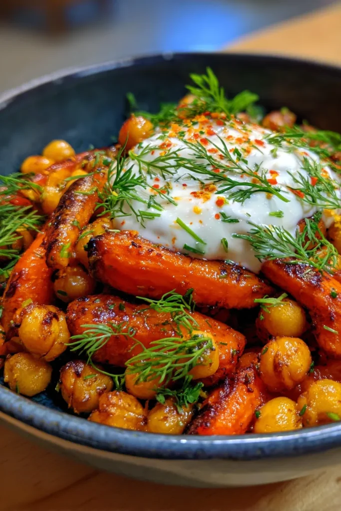 Spicy Maple Roast Carrots with Crispy Chickpeas Recipe