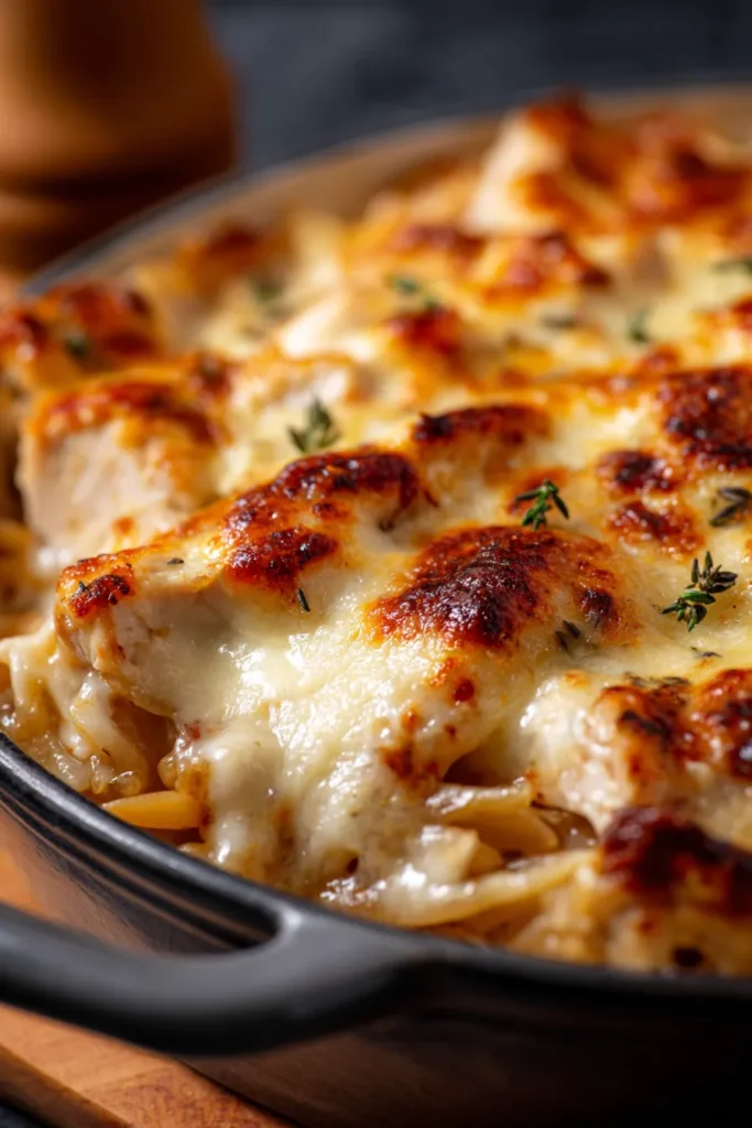 Cozy French Onion Chicken Orzo Casserole | Family Dinner