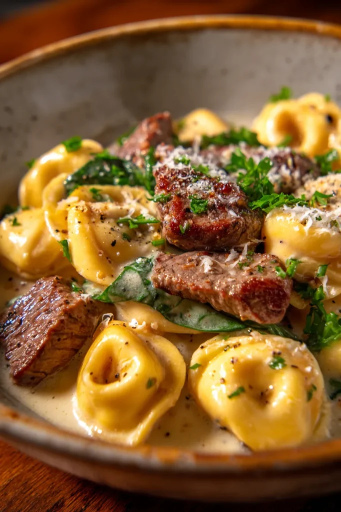Garlic Steak Tortellini in Creamy Parmesan Sauce Recipe