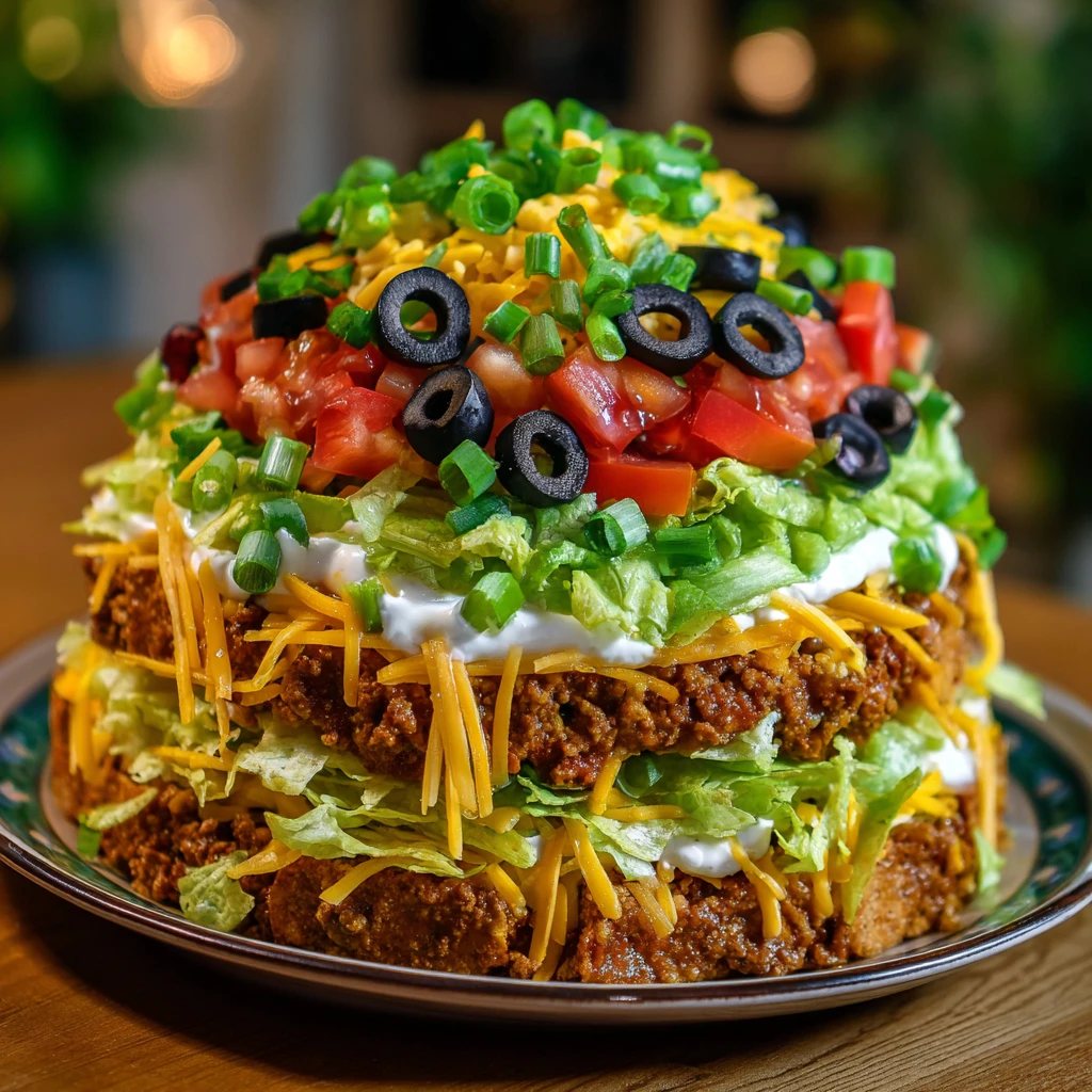 Presentation is key for a show-stopping seven-layer taco salad. Use a clear glass bowl to showcase the layers. Arrange the layers carefully to create a visually appealing effect. Garnish with fresh cilantro or a sprinkle of chili powder.